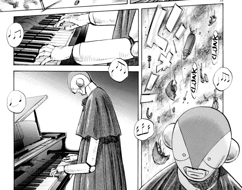 Sí, la historia original de Astro Boy ya involucraba robots siendo asesinados, pero se contaba desde el punto de vista de Atom aprovechando para momentos entrañables y una reflexión sobre la injusta relación humanos-robots. De modo que Urasawa usa la ocasión para llevar la historia hasta su campo e inclinarse hacia el género que mejor se le da: el thriller. Si bien seguimos paso por paso la historia contada muchos años antes, el enfoque es diferente al tiempo que el contexto en que se desarrolla se explora muchísimo más a profundidad, creando un universo tan vasto como el de muchas obras literarias de ciencia ficción ya consagradas. Urasawa no se anda con niñerías.