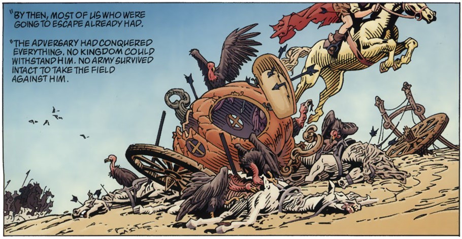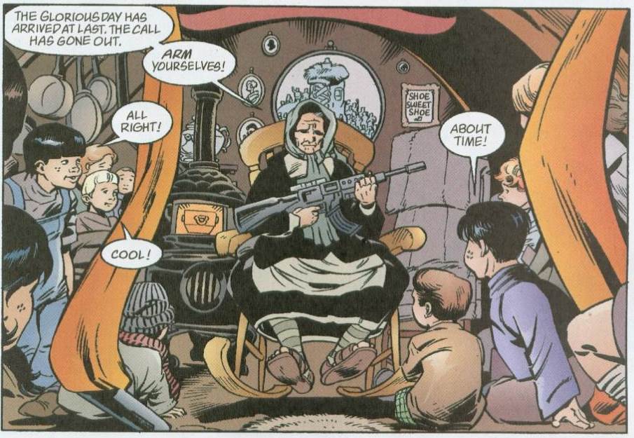 La línea editorial de DC enfocada en un mercado adulto, de la mano del autor Bill Willingham, se encarga de recordarnos la naturaleza original de estas historias para dormir. Fábulas infantiles sobre las que se cernía una amenazadora oscuridad, una crueldad ancestral que podía llevar a brujas a morir quemadas en hornos sacrificiales, a hermanastras malvadas a mutilarse los pies por apropiarse de un zapato, a dibujar un camino repleto de espinas y amenazas con tal de suponer un ‘y vivieron felices para siempre’ antes de que se cerrara el libro. Los cuentos infantiles eran y son el recordatorio de nuestros temores primigenios, de todas las posibilidades de la maldad. Y aunque Disney y otras producciones han querido dejarnos sólo con el recuerdo de los castos besos finales entre príncipes y princesas, en «Fables» ese mundo de personajes mil veces narrados se liberan de sus tierras fantásticas para venir al *mundo real*.