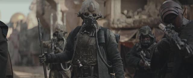 Esto lo ejemplifica bastante bien el personaje de Jyn, ya que aunque es la protagonista heroica y tiene algo de ‘the chosen one’, es también bastante claro que su posición es meramente circunstancial y que al final es solamente un engranaje en un movimiento enorme que no tiene que ver con ella como individuo sino como posibilidad. Del mismo modo, los diversos personajes que irán apareciendo tendrán razones de las más diversas para llegar al punto en que empieza la acción, no todas las cuales necesariamente tienen que ver con una convicción política (e incluso quienes lo hacen por convicción podrían no estar haciendo necesariamente lo correcto). Aunque todo esto es una noción general de lo que hemos visto en las películas anteriores y también algo que suponemos de cualquier conflicto (sea o no intergaláctico), sin duda era algo que no se había explorado a profundidad y que aquí funciona no sólo para demostrar que hay muchas otras historias de lo más interesantes que contar en relación con «Star Wars» sino también para enriquecer exponencialmente esta obra que muchas veces parece que se encasilla demasiado con repetir la misma historia.