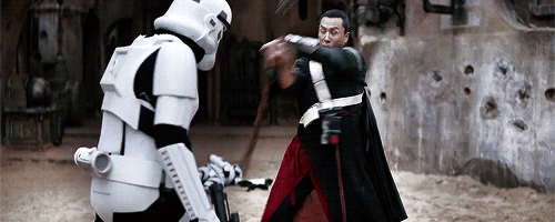Aunque no me parece que Jyn y Andor destaquen especialmente por sus actuaciones (Diego Luna nunca me ha parecido un buen actor), creo que en general se mantienen bastante bien dentro del margen de lo correcto para dejar que todo lo demás fluya adecuadamente a su alrededor, además de que sus personajes son bastante interesantes por sí mismos sin necesidad de ahondar demasiado. También es cierto que K-2SO, quien permanece en un punto más que adecuado del comic relief, ayuda a liberar un poco la tensión alrededor de ellos, sobre todo al inicio. Para mí lo mejor son sin duda Chirrut y Baze, donde la elección de Donnie Yen es inmejorable; y Galen Erso, básicamente porque es Mads Mikkelsen y lo amo. Muy objetivo.
