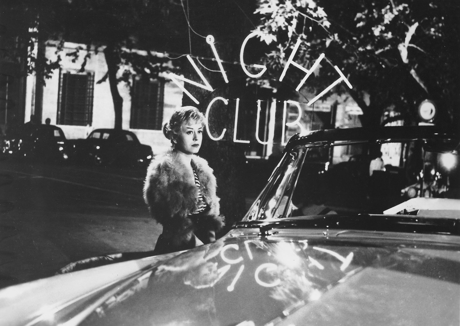 Las ‘noches’ de Cabiria son una serie de escenas, retratos, no necesariamente hilados entre sí, que van desarrollando a este personaje y sus motivaciones. De verla gritarse con sus compañeras de zona a acudir juntas a una celebración, de ser perseguida por la policía a vagar por las zonas altas de la ciudad en busca de clientes, de negarse a dejar hablar a cualquier pretendiente por miedo a ser engañada de nuevo a replantearse su vida como prostituta. Casi todo enmarcado en una Roma tangencial, la no glamourosa, sin luces. Una Roma de noche que casi siempre es pobre pero a veces puede casi tocar el otro lado. Y Cabiria finge no desearlo, pero acaricia ese otro lado.