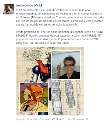 DesconectadoNuevamente, Mazinger Z vuelve a ser noticia en nuestra web. Esta vez, la noticia se centra en que el actor de doblaje mexicano Jesse Conde interpretará a Juuzo Kabuto, el abuelo de Koji Kabuto, el piloto del popular robot gigante, en la nueva adaptación del manga de Go Nagai, Shin Mazinger Z Hen.