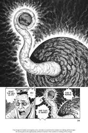 Todo bien hasta que el planeta se va acercando y se come en cuestión de minutos a Pluton,Neptuno,Urano,Saturno,Jupiter y Marte, pero justo cuando llega a la tierra,no se la come de forma inmediata, si no se espera y obvio todo un caos, y culpan a al astronomo y a su hija, que en si, no hicieron nada malo, pero estas personas ya hasta los van a crucificar y luego se aparecen unos tipos bien raros vestidos como el Ku Klux Klan pero en negro, y no no no… mejor lean el manga, no tiene muchos caps y vale un chingo la pena, lo mismo que dijo Cake sobre Gyo,te quedas con miedo de que eso pueda pasar.